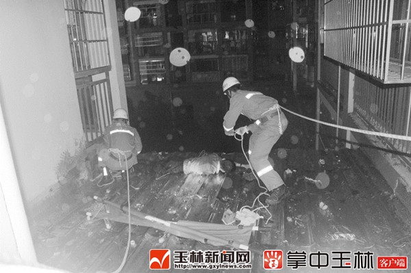 消防指揮員隨大世界商廈保安到達6樓,見被困者是一名年輕男子,全身濕漉漉的背朝天躺在6樓走廊外的鐵質雨棚頂上,不時痛哭,用左手拍打雨棚發(fā)出求救信號。從6樓走廊盡頭到雨棚中間,有一道1米多高的護欄,上面有血跡。雨棚兩側是居民樓,男子正好墜落在沒有護欄一面的雨棚邊沿,若身體稍挪動便會從6樓雨棚滑落。