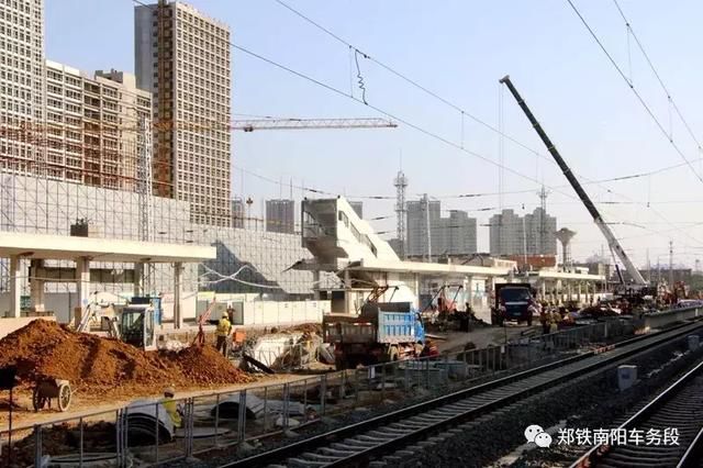 相關資料顯示,南陽站改造設計為新建線側平式站房。即拆除既有站房,原址新建線側平式站房,總建筑面積20899.1平方米。建過渡站房一座,建筑面積2986.2平方米。改造基本站臺、二站臺、三站臺為高站臺;拆除既有進站天橋,新建12 米寬旅客進站天橋。拆除既有雨棚3座,新建站臺立柱式混凝土雨棚3座。拆除既有旅客出站地道1座,新建8.2 米寬旅客出站地道1座,新建5.2 米寬行包地道1座,新建管線涵2座,排水涵2座及給排水工程。調整車站股道布置,對車站內股道進行改移、改建:拆鋪4、6、8、10道線路,拆除14、16、18道3條存車線;以及配套進行的通信、信息、電力、電化等站后相關工程。