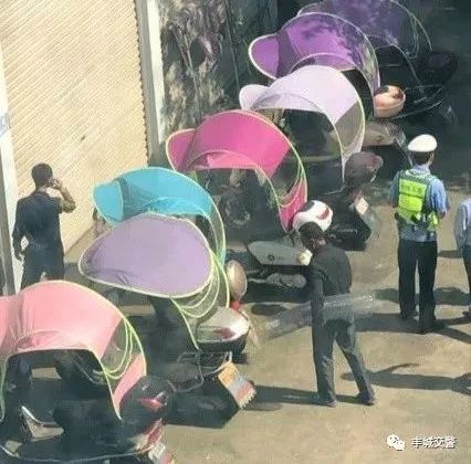 摩托車、電動車安裝了遮陽傘后,很大程度上遮擋了自身以及他人的行車視線,刮風(fēng)、轉(zhuǎn)彎時容易發(fā)生側(cè)翻,存在巨大的交通安全隱患。在此次專項行動中,民警現(xiàn)場拆卸遮陽傘,并對安裝遮陽傘的駕駛?cè)诉M(jìn)行勸導(dǎo)教育,對于無手續(xù)的車輛一律暫扣進(jìn)行核查。