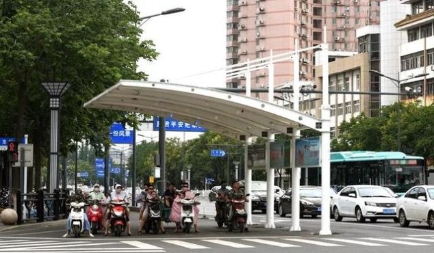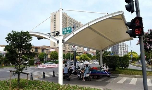 新建的108座遮陽擋雨棚全部亮相市區32個道路交匯口,豎立在非機動車道上的白色遮陽棚,與道路兩旁郁郁蔥蔥的樹木交相呼應,成為道路上一道亮麗的風景線,給在烈日下出行的人們等候紅綠燈時營造了一片清涼空間。