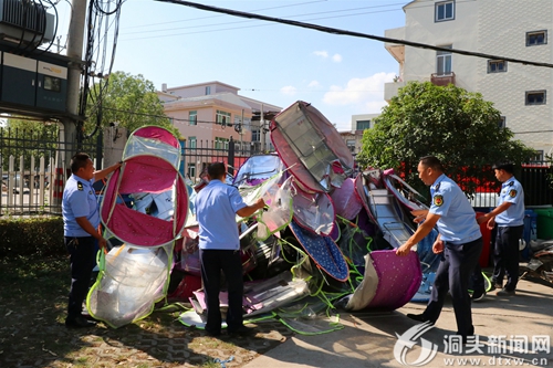 洞頭網(wǎng)訊(通訊員 周可可)10月15日下午,靈昆街道聯(lián)合洞頭交警六中隊(duì)及行政執(zhí)法部門對轄區(qū)范圍內(nèi)尚未自行拆除的電動(dòng)車加裝雨篷交通違法行為進(jìn)行依法拆除整治。