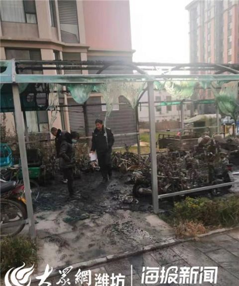 大眾網濰坊·海報新聞12月12日訊12月11日晚,高新區盛華名園小區內一自行車棚發生火災,車棚和停放在里面的車輛基本全部燒毀。目前,物業還未就此事作出回應。