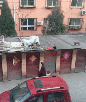自己家小區(qū)的老奶奶最近常常拿樹(shù)枝挑塑料袋到車棚頂上去,開(kāi)始還以為這老奶奶是把垃圾丟在車棚頂上,后來(lái)去看了才知道,老奶奶這是在喂一群流浪貓。
