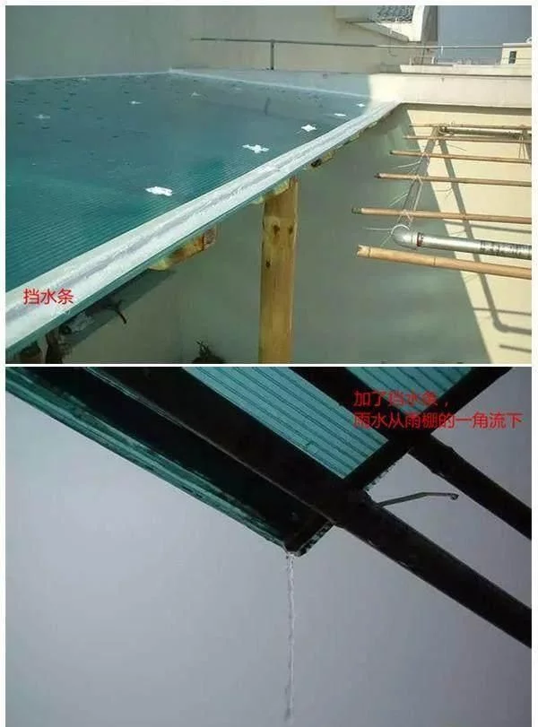 把框架固定在墻上,上陽光板,用玻璃膠來處理接縫處,還可以簡單地做個(gè)擋水條,讓雨水只從一個(gè)角落流下!