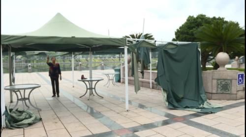 隨后,老白聯系了麗水市南明湖管理處,工作人員來到現場查看了破損的雨棚后告訴老白,這個雨棚是他們1月份左右剛維修好的,現在又壞了,這樣的雨棚已經不適合再次維修了,要拆除。他們會向主管局和市財政爭取資金,按照規劃要求給市民添加一些更美觀、更適合南明湖的遮雨棚,爭取及早恢復遮陽棚,讓市民有個躲雨的地方。
