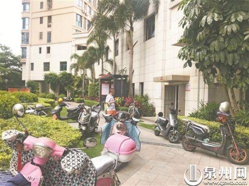 偉潤帝景小區位于湖心街與溫陵路交界處。昨日上午記者來到小區發現,中庭路面兩邊和入戶門口處停放著不少電動車。1棟1梯架空層有一個停放區,設有充電柱,里面停滿了車。小區物業服務中心盧經理介紹,該小區2014年6月份交房,共有170多戶,開發商建設時并未規劃電動車停車棚。隨著入住率增高,電動車無序停放問題日益突出,引來不少業主投訴。目前小區共有電動車200多輛,1棟那邊的停放區容量有限,100輛左右的電動車只能停在小區公共通道。“我們知道,停在通道會影響小區形象和消防安全,但實在沒有地方停。充電也只能排隊到停放區充。”一位業主稱,因為充電位緊張,他的電動車曾經充到一半時被人拔掉電源插頭。