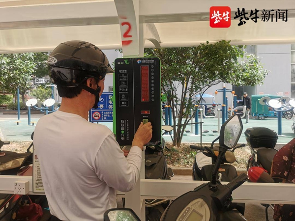 “有了地面充電樁和停車雨棚后,我們給電動車充電就方便多了,一塊錢可以充6小時,2小時只要三四毛錢,實惠又安全。”家住無錫市梁溪區(qū)通江街道廣晟苑二期的居民仲師傅將電動車停到充電插口前,熟練地完成刷卡、按鈕、充電等操作后,樂呵呵地和社區(qū)工作人員說道。