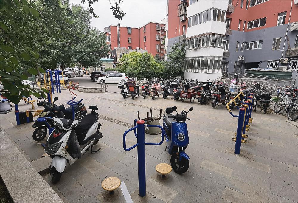 “這幾天開始禁止電動車上樓,樓前的車馬上增多了,亂糟糟停了一大片,幾乎快將過道堵住了。”老住戶擔心車輛會堵了門出不去。記者發現,小區的多棟樓前后,都有電動自行車隨意亂停的現象,甚至安裝了體育健身器械的活動空地都被電動自行車霸占了。