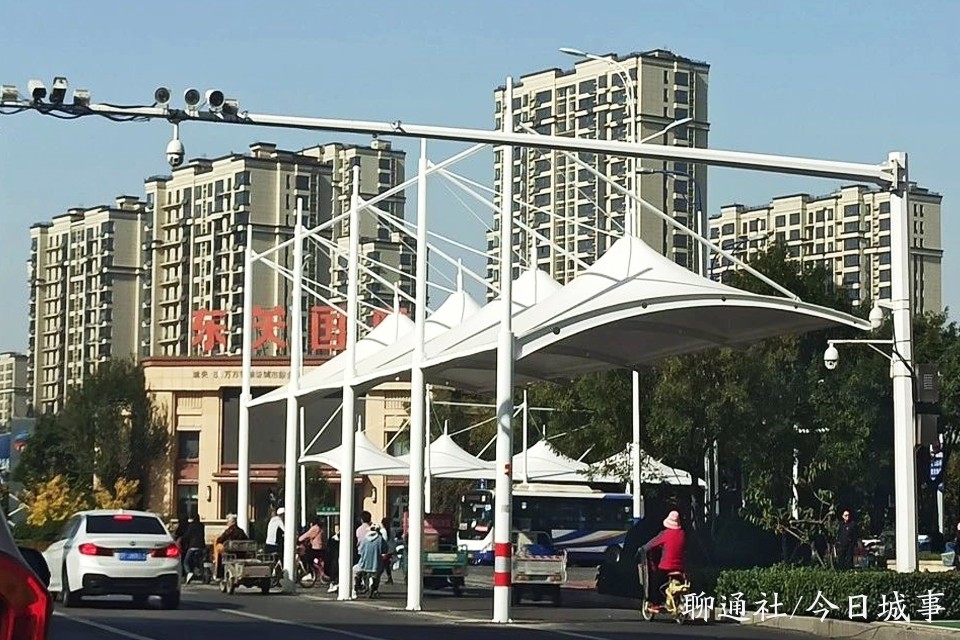 2020年10月22日,在聊城市區(qū)人流量比較大的花園路與后菜市街交叉路口,首個遮陽棚開始施工,10月27日,正式投入使用,在方便騎車路過的市民們遮陽擋雨的同時,也成為這個路口的一大景觀亮點。