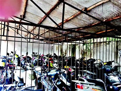 這個車棚四面都有墻壁圍著,還有屋頂,就像是一個倉庫。在停車棚外,辛某還貼上了高價收車的海報。